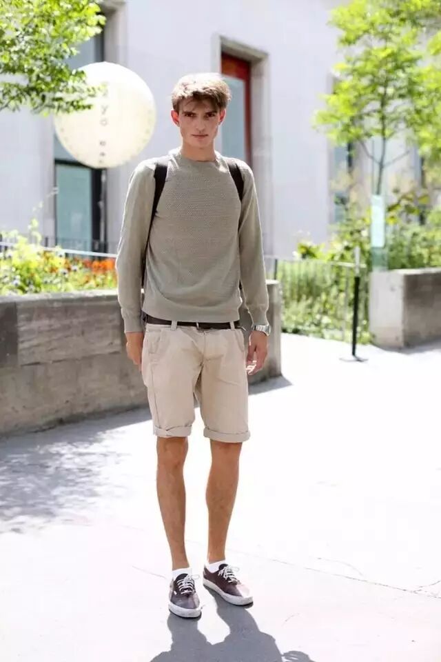 短裤上面最适合的是衬衫、Polo衫以及T恤颜色参照上面说的款式尽量选择相对合身的如果是衬衫的话最好选择别过长的修身款要是真的太长也可以用皮带扎进去▼