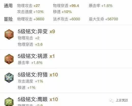 战士/打野通用百穿铭文:9异变+鹰眼+狩猎+1祸源