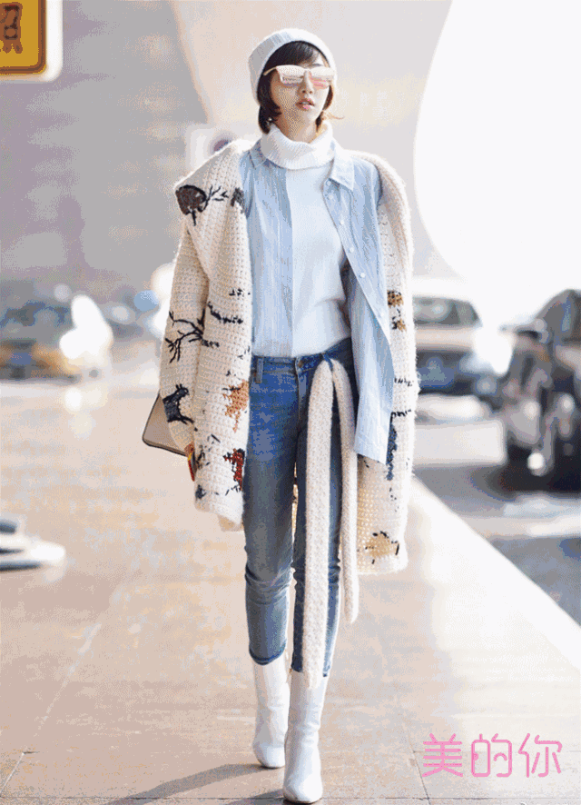 内搭的单品一定不要过膝,这样便于秀长腿。