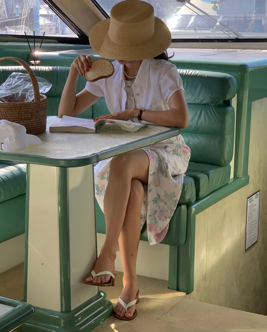 但我觉得她做得比较好的一点是,她会在甜美的基础上,打扮得更加文艺一些,就比那种烂大街的甜美风格更耐看,也更有个人辨识度比如她会在日常的穿搭中对配饰的运用,例如加入珍珠耳环、各种各样的头饰、编织元素的包包和帽子,十分凸显文艺气质。