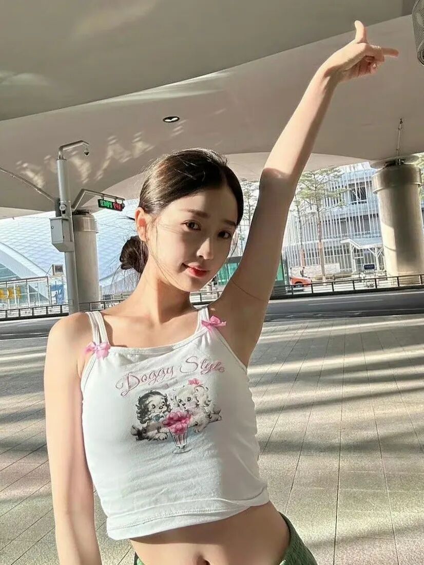 风格多变的欣欣子为女孩子们提供了多种思路,总有一款适合你!01 纯欲风前段时间风靡的纯欲风,欣欣子也是狠狠拿捏住了。 小狗图案、刺绣字母、蝴蝶结,众多甜美元素的聚集,十分可爱。