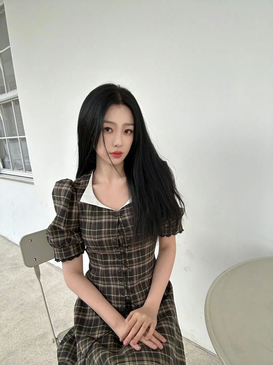 一些连衣裙,乖巧少女既视感,在日常场合绝对不会出错的穿搭。白色翻领格子裙,温柔端庄的乖乖女。
