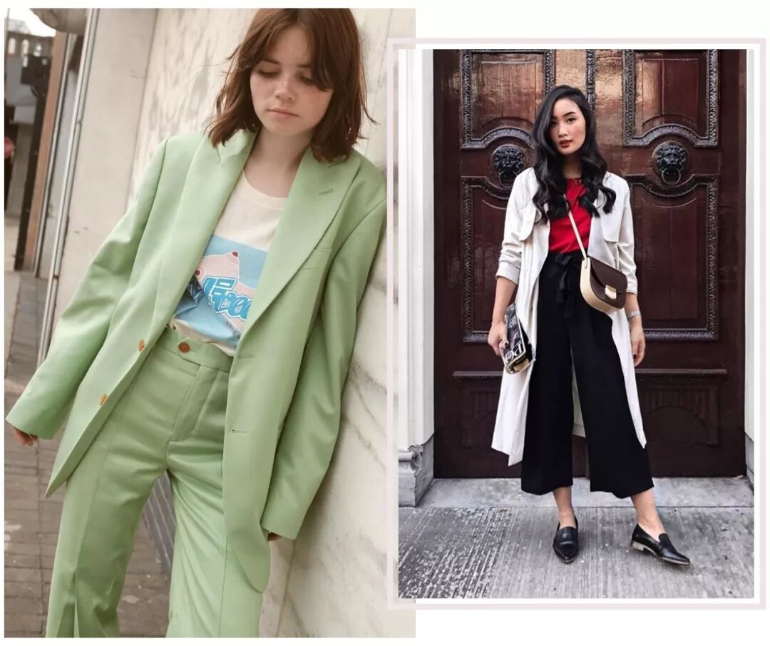 图片:Instagram@double3xposure同色裤装+西装的搭配方式在街拍上市比较常见,模仿起来也不需要太多技巧,是非常讨巧高级的穿法。
