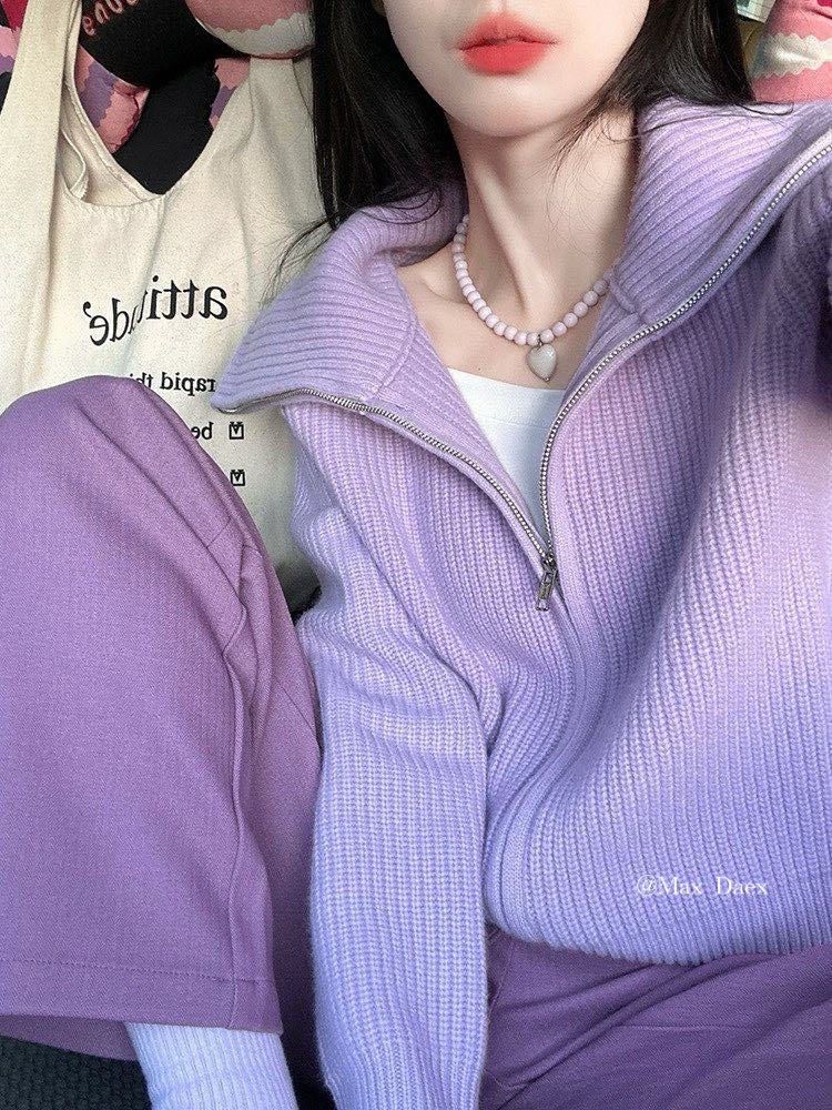 不得不说这件翻领毛衣是属于光看颜色就会爱上的一件,这个颜色也太绝了吧,迷雾紫亮眼不会挑人 上身就是回头率密码~我真的爱啦爱啦!