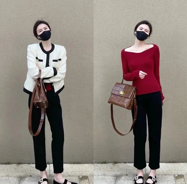 经过一个冬天,我们多多少少有些发福,想要看起来瘦五斤,那就给自己准备一条黑色烟管裤,绝对显瘦神器番茄红色修身毛衣,搭配黑色烟管裤,选择九分的长度更显腿长,这套搭配很适合梨形身材的女生,彰显出上身纤瘦的优势。