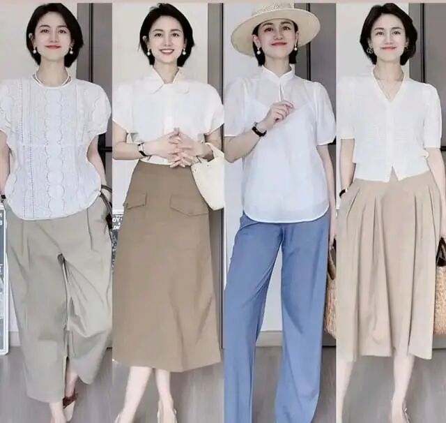 白色或是卡其色是比较百搭的单品,可以与任何颜色的上衣进行搭配,都显得很OL范儿