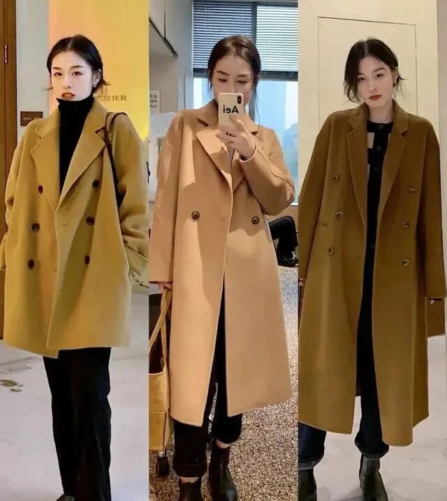 你的大衣再贵,如果长度没选对,也穿不出高级感,要么显得拖沓臃肿,要么感觉廉价身高不到160cm的小个子女生,长款大衣的长度最好在90-100cm左右,到小腿处,不要太长,露出一截小腿来,这样会显得人更修长一些,身材比例也比较好看,而且不会拖沓压个子。