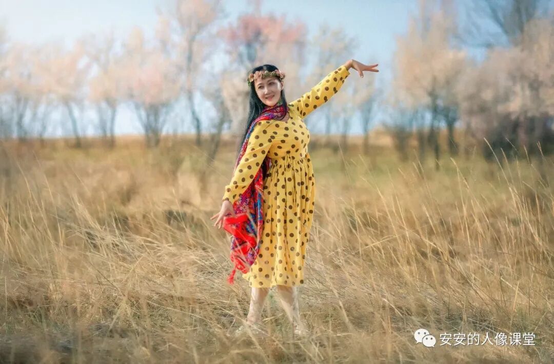 ↑↑ 丝巾啊,五颜六色的飞舞在半空太常见了,咱们不一定这样用;因为大多数中年姐姐都有很多丝巾,选择一条与自己的服装搭配起来也是很棒的;我有两个理由建议你这样做:第一,不要拿在手中,可以腾出两只手来做更多的动作,表现出更多的姿态;拍照过程中手的作用非常大,如果拿着丝巾,你的两只美美的手啊,就很难展现出来了;第二,丝巾是个非常好的道具,不管是围在脖子里,还是裹在头上,还是挽在胳膊上,都是服装穿搭中非常理想的配饰,选好颜色就是非常好的点缀;