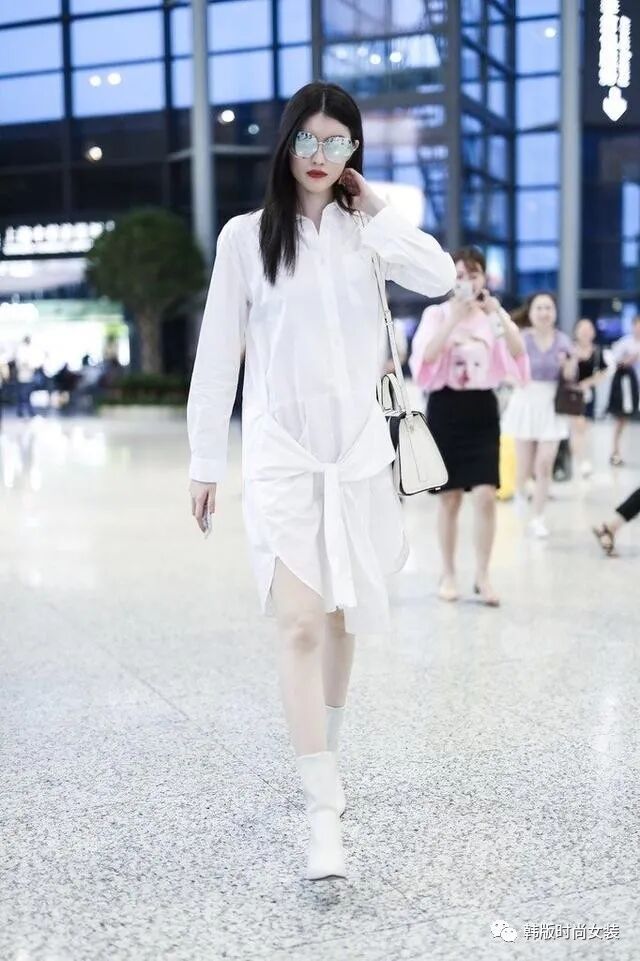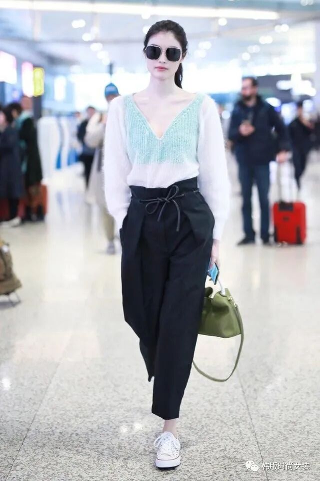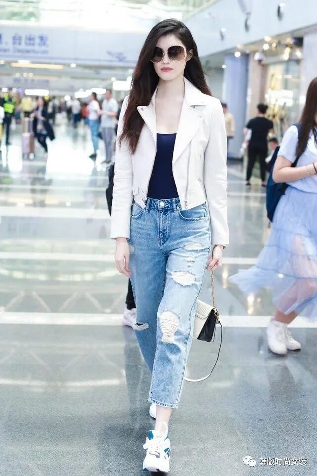 美女坐飞机或者火车出去旅游的时候,通常都会选择舒适而又不缺乏美的服饰。这时美女可以选择一件短款的白色小西服,再搭配一条非常流行的破洞七分牛仔裤。外穿一双舒适的运动鞋。然后带着黑色的眼镜走在。走在机场或者火车站,也可以拍出一张非常美丽的照片。