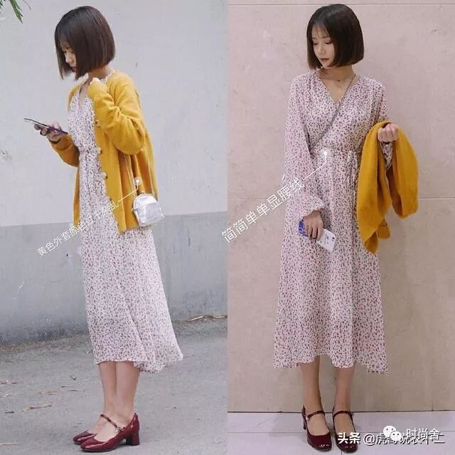 ▲小个子女生一定要要学会显腰线,相信很多宝宝都知道,但是除了自带腰线的款式,还可以利用外套哦!一件小碎花收腰连衣裙搭配一件短款小开衫,外套与腰线的对比视觉上就很容易制造高腰线,所以轻松显腰线,打造高挑女神之感,腰线必不可少。