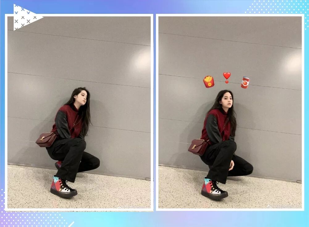 看多了欧阳娜娜的照片,发现她最常用的穿衣法则是遵循颜色呼应的原则。尤其是对于颜色比较亮的单品,颜色呼应更是用的得心应手。