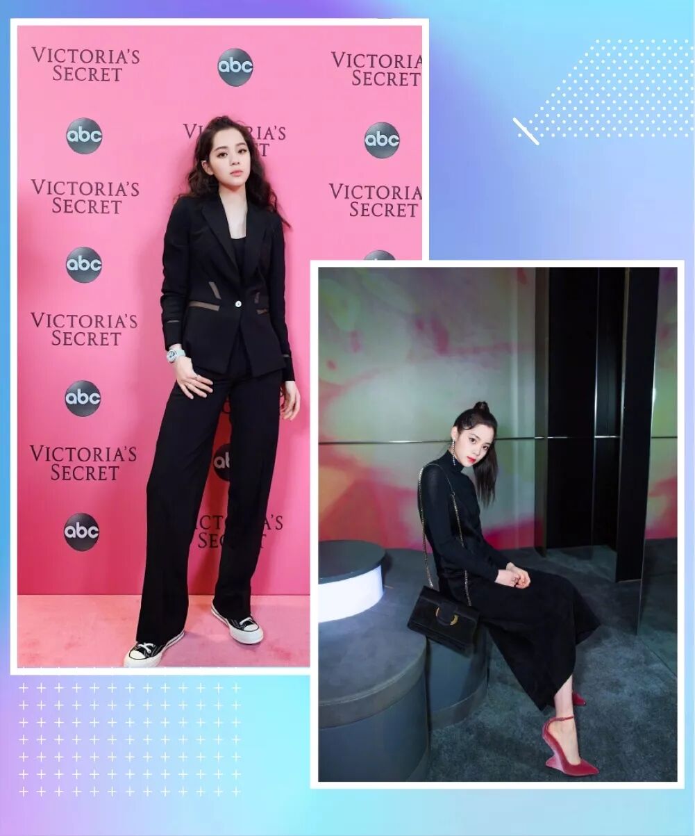 娜娜选择在用一双特别的鞋子来搭配,比如黑色西装套装搭配一双运动鞋,既霸气又少女;或者一件小黑裙配上粉色异形跟高跟鞋,也让造型不会显得过于死板。