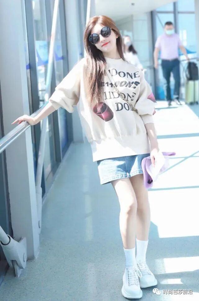 这不,很多女明星不论是机场街拍,还是上节目,都会穿这样的组合。亲切又自然,扑面而来的减龄少女感,谁会不爱?